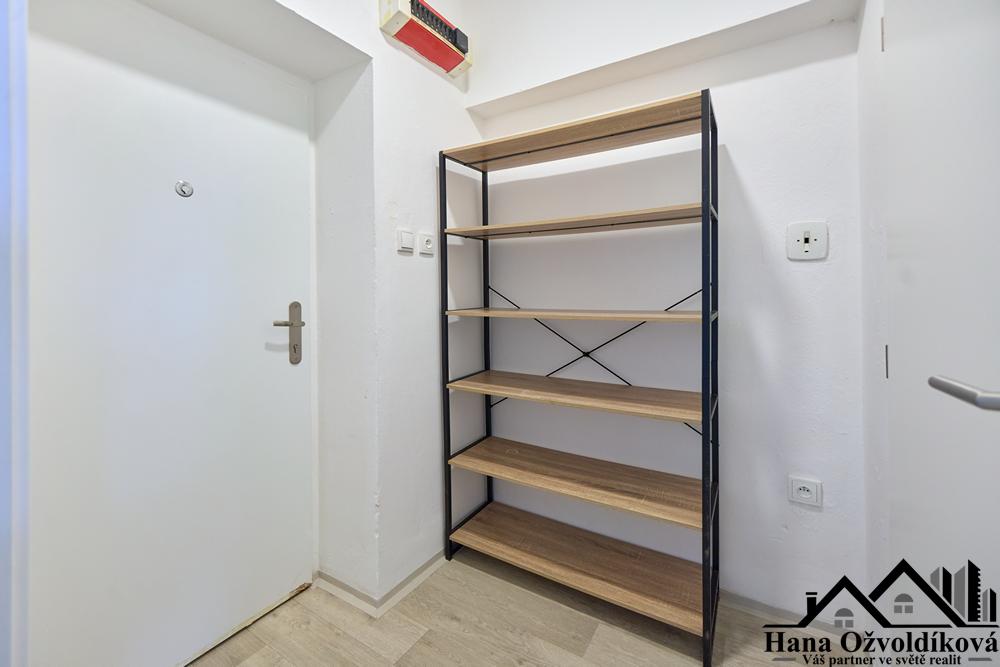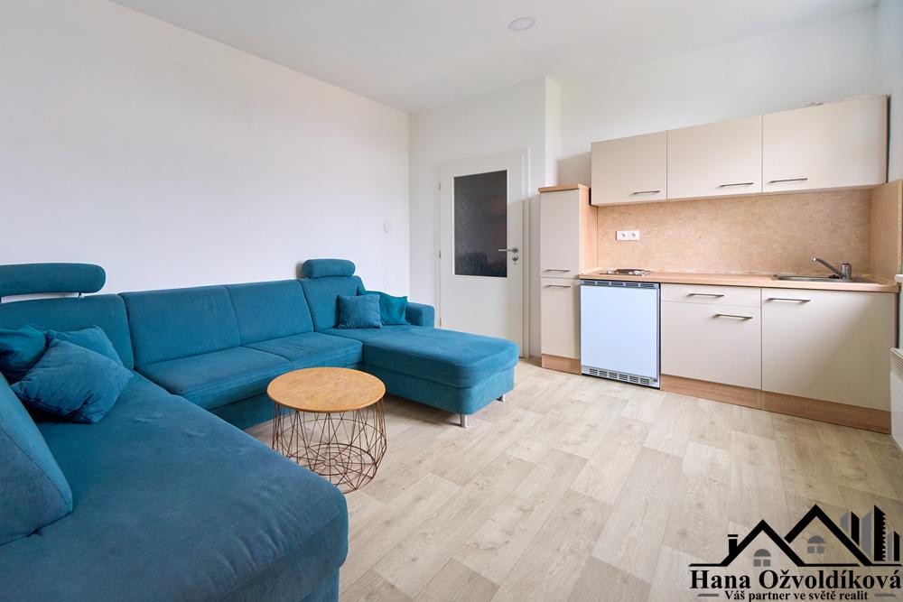 Dispozice bytu je prakticky rozdělena na pokoj s kuchyňským koutem, chodbu a koupelnu se sprchovým koutem. Interiér je vybaven kuchyňskou linkou s dřezem, přičemž ohřev vody zajišťuje vlastní bojler a vytápění je řešeno elektrickými přímotopy.
